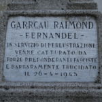 GARRCAU RAIMOND / - FERNANDEL - / IN SERVIZIO DI PERLUSTRAZIONE / VENNE CATTURATO DA FORZE PREPONDERANTI FASCISTE / E BARBARAMENTE TRUCIDATO / IL 26-4-1945