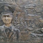 Lastra in ferro battuto sagomata a forma di “Fiamma”; al centro è applicata una lastra a bassorilievo in ottone di forma rettangolare, decorata dall’effige del Carabiniere Scelto Fortunato Arena, Medaglia d’Oro al Valor Militare, deceduto durante un conflitto a fuoco avvenuto in Pontecagnano Faiano (SA), in data 12 febbraio 1992. Sullo sfondo del rilievo è rappresentata la scena dell’avvenuto eccidio.