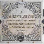 Lastra commemorativa in onore del Brigadiere dei Carabinieri Reali a cavallo Antonino Diliberto, colpito a morte da un pericoloso latitante il 18 novembre 1932, insignito di Medaglia d’Argento al Valor Militare alla memoria. La lastra è di forma quadrata, decorata da corona d’alloro incisa e dalla fotoceramica del Brigadiere Diliberto in uniforme.
