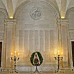 - Le pareti del Sacrario sono interamente ricoperte di marmo rosa, nel quale sono state inserite, attraverso il tempo, lastre incise in stampato maiuscolo e colorate, contenenti i nomi dei Caduti di tutte le guerre, da quelle di Indipendenza in poi