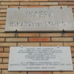 Lastre poste nell’angolo sinistro dell’entrata principale di Palazzo Luigi Razza, sede del Comune di Vibo Valentia. Quella superiore in pietra è per onore ai Martiri d’Ungheria, quella inferiore in marmo è per riconoscenza alla città Calabrese.