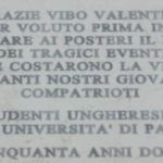 GRAZIE VIBO VALENTIA PER AVER VOLUTO PRIMA IN ITALIA TRAMANDARE AI POSTERI IL RICORDO DEI TRAGICI EVENTI CHE COSTARONO LA VITA A TANTI NOSTRI GIOVANI COMPATRIOTI. GLI STUDENTI UNGHERESI ESULI ACCOLTI DALL'UNIVERSITA' DI PADOVA NEL 1956. CINQUANTA ANNI DOPO.