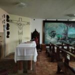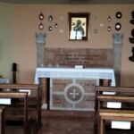 Al centro della lapide dell'altare è posta una croce di marmo bianco inscritta dentro a un cerchio. a rappresentare la vita eterna dell'umanità.