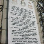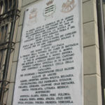 Lastra commemorativa a forma rettangolare con in rilievo la dedica al 150° anniversario della fondazione della Scuola di Cavalleria di Pinerolo (1849-1999); in capo tre stemmi dipinti.