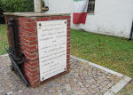 Lastra commemorativa di forma rettangolare recante iscrizione incisa a ricordo dei Caduti durante la Guerra di Liberazione. La lastra è apposta ad un cippo in mattoni decorato su un lato da ancora.