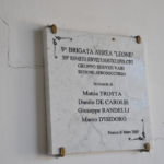 Lastra commemorativa di forma quadrata in ricordo del personale antincendi del Reparto Servizi Logistici Operativi Mattia Trotta, Danilo de Carolis, Giuseppe Randelli e Marco D’Isidoro.