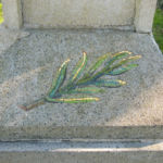 - ai piedi della lapide recante i nomi è rappresentato, in mosaico, un ramo di alloro.