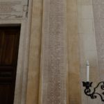 - Le pareti del Sacrario sono interamente ricoperte di marmo rosa, nel quale sono state inserite, attraverso il tempo, lastre incise in stampato maiuscolo e colorate, contenenti i nomi dei Caduti di tutte le guerre, da quelle di Indipendenza in poi