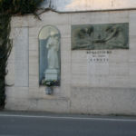 Vi è un rilievo in marmo che raffigura due combattenti delle due Guerre, in ginocchio mentre sorreggono una fiaccola. Opera di Ulisse Salvador.