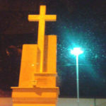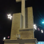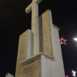 Monumento in pietra con croce in marmo