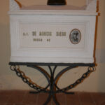 All'esterno una spada sopra l'ngresso, due maschere ai lati.