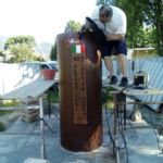 Sul cilindro è saldata una targa in ferro lunga all’incirca 110 centimetri e larga 25 centimetri, nella parte superiore della targa è stata verniciata a forno la Bandiera Italiana e sull’intera lunghezza della targa è stata tagliata a laser la scritta presente.