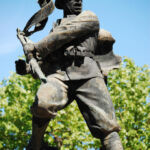 L'unico e importante simbolo del monumento è la figura del fante che impugna la bandiera.