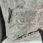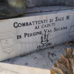 - Sulla pietra ci sono incisi 3 simboli: il primo è lo stemma di Pergine, formato da due linee verdi, una azzurra, una P su sfondo rosso e una corona; il secondo presumiamo rappresenti una fiamma eterna formata da un braciere e tre fiamme; il terzo non meglio identificato formato da un mare con sopra una barca che galleggia e sopra una specie di T capovolta.