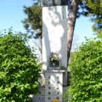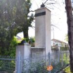 - La stele centrale ha sulla cima un candelabro di metallo ed è adornata, sopra l’iscrizione, da un fregio militare in metallo.