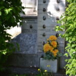Sopra i due pilastrini laterali sono presenti due elmetti di fante della prima guerra mondiale.