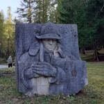 Il materiale impiegato, costituito in gran parte da sasso vivo con caratteristiche venature rossastre, richiama nei colori e nelle fratture l’aspetto tipico delle Dolomiti, di cui il monumento sembra diventare una naturale prosecuzione.