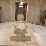 Nella cripta le scritte "Tenente Medaglia d'Oro Francesco Barbieri" e "Generale Medaglia d'Oro Antonio Cantore" sono scolpite nella pietra alla base della statua del "Fante Morto" con caratteri a stampatello. All'ingresso, sulla sinistra, una lapide riporta in stampatello la scritta: