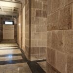 Le lastre che rivestono le pareti riportano il grado, il nome e il cognome dei soldati, le cui ossa sono deposte nei loculi retrostanti. Ogni loculo è contraddistinto da un riquadro inciso, di circa 40 cm di altezza per 50 centimetri di larghezza. Tutte le lastre hanno cinque colonne di iscrizioni. Al piano terra, sulla parete esterna del Sacrario, si trovano lastre a tre righe, disposte a due a due separate da sottili feritoie che lasciano filtrare la luce. Verso l’interno del Sacrario, invece, le lastre si alternano a otto o undici righe.