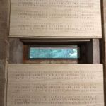 La numerazione delle lastre è arbitraria, mantenendo il loro ordine per piano (PT: da 1 a 59; P1 da 101 a 151) e partendo dalla parte più esterna. Questo rispecchia anche l’ordine alfabetico dei Caduti per cognome, sempre rispettato ad eccezione di alcuni casi nelle ultime lastre, dove verosimilmente furono deposte salme recuperate successivamente al completamento dell'opera.