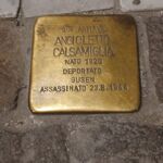 - Angioletto Calsamiglia nacque a Porto Maurizio il 5 marzo del 1920, solo nel 1923 Mussolini decise di unificare i due centri urbani di Oneglia e Porto Maurizio e denominare la città Imperia. Calsamiglia era figlio di Maurizio e Caterina Gazzano. Fu aviere di grado militare. Fu deportato al campo di concentramento di Gusen, uno dei 49 sottocampi di Mauthausen. Morì per una tubercolosi il 23 Agosto 1944 all’ospedale militare di Gallarate. Infine occorre evidenziare la discrepanza rigurdante il cognome: Calsamiglia all'anagrafe, mentre il certificato di morte riporta Calzamiglia