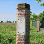 - Stella a cinque punte incisa in testa alla lapide. Quattro piccole croci di bronzo che costituiscono gli altrettanti perni di sostegno della lapide alla colonna.