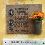 - Lapide di marmo bianco venato sorretta da quattro borchie. L'iscrizione è incisa e colorata di nero. Presente una fotoceramica. Alla lapide è agganciato un vaso portafiori.