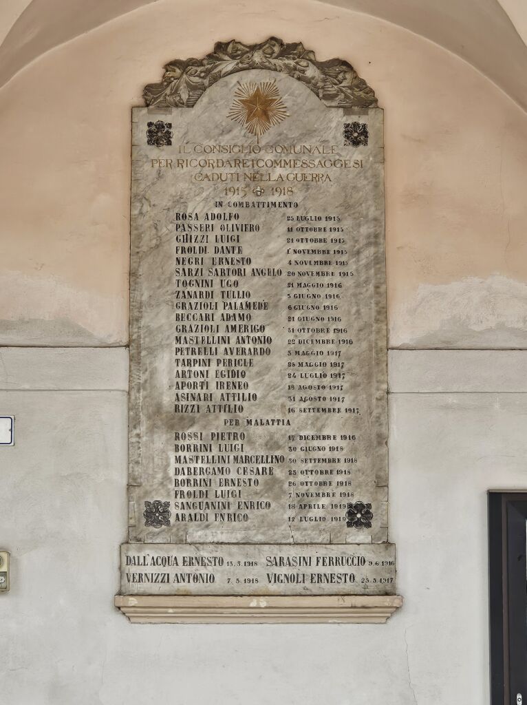 Lapide marmorea affissa sulla facciata dell’ex scuola elementare di Volano. Vi sono elencati i caduti nella prima guerra mondiale della piccola frazione codigorese. ...