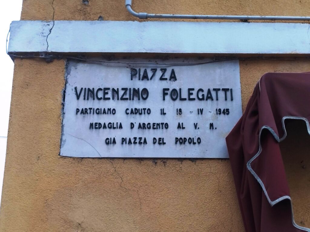 Lastra posta per intitolare una piazza della città al partigiano comacchiese Vincenzino Folegatti caduto durante la guerra di Liberazione e per questo decorato al Valor Militare. ...