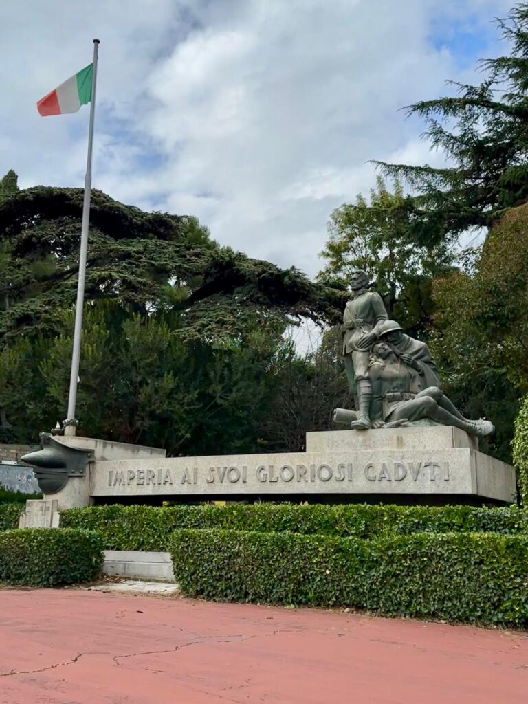 Il Monumento è stato realizzato in marmo. La parte alta è ornata da una sequenza di fiori sbocciati in bronzo. Un cippo è posto sopra un basamento composto da tre gradoni in pietra e cemento. Sul terzo gradone, ai lati, è ...