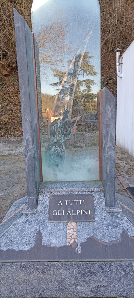 Il monumento è costituito da un basamento in marmo sul quale si trova una scultura rappresentante la penna degli Alpini su una lastra in vetro. Ai lati sono presenti lastre dedicatorie. ...