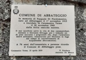Lastra apposta dal Comune di Abbateggio per onorare il concittadino Pasquale Di Pierdomenico trucidato dai tedeschi a Caramanico Terme nel novembre 1943. ...