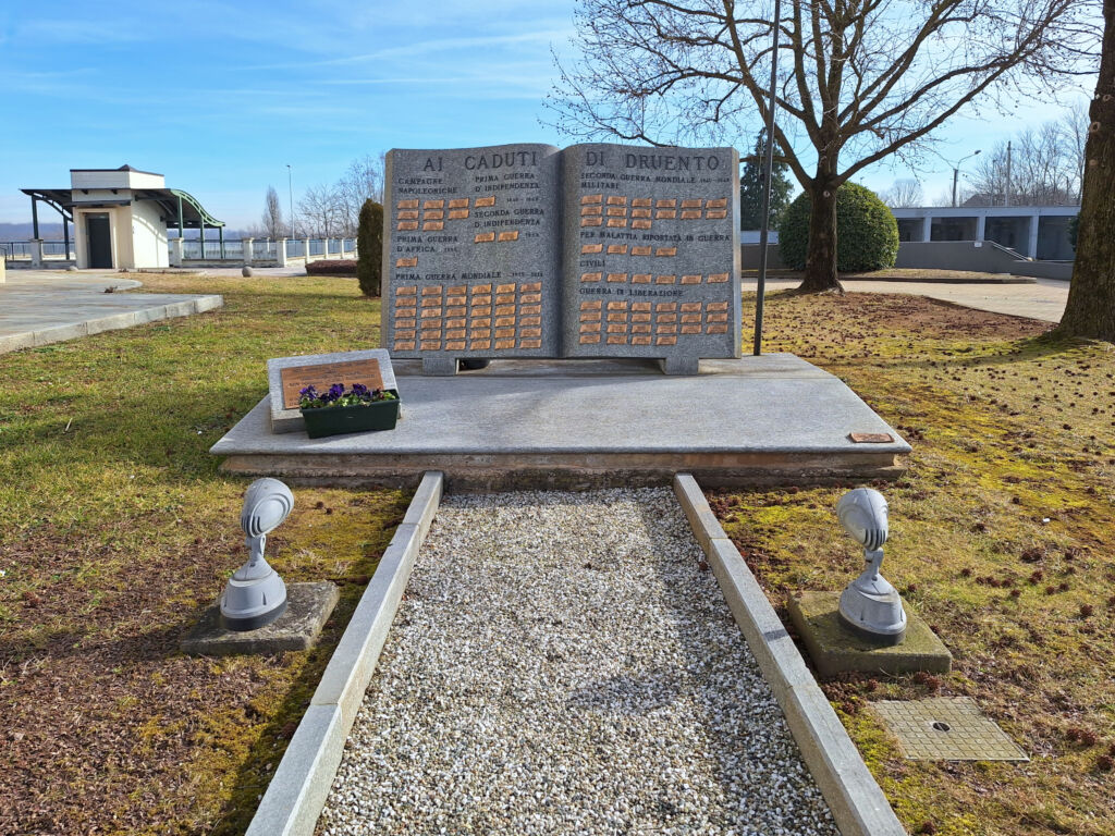 Il monumento, posto in una zona centrale del cimitero di Druento, si compone di una base rialzata e pavimentata da grandi piastrelle in cemento, contornata su tre lati da alcuni manufatti in muratura. Nella parte anteriore si ...
