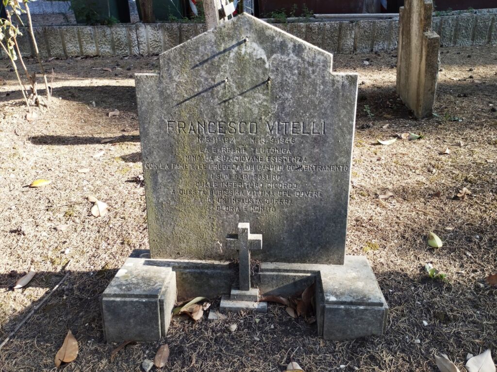 Stele posta nel cimitero di Montorio sulla tomba terragna di Francesco Vitelli che, durante la seconda guerra mondiale, fu deportato nei campi di concentramento tedeschi e morì dopo il ritorno in patria a causa degli stenti ...