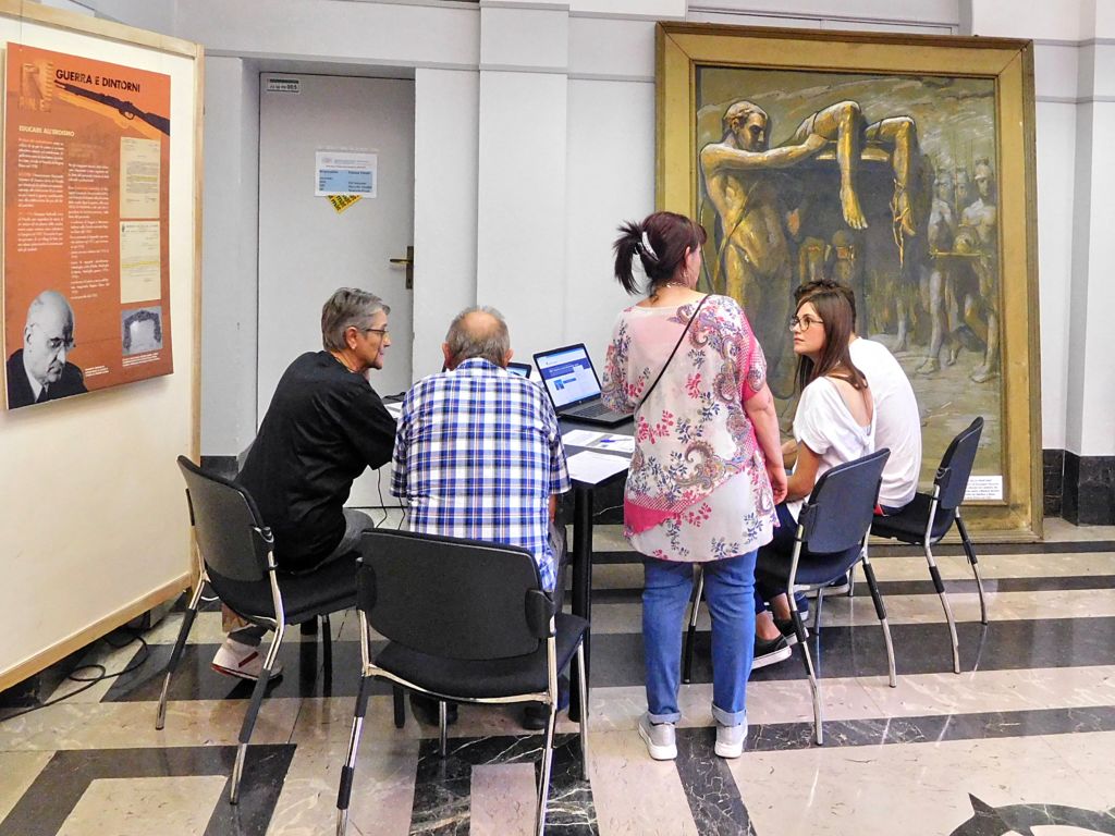 MODENA – Più di 200 visitatori del Festival filosofia 2019, svoltosi a Modena il 13-14-15 settembre, hanno sperimentato la ricerca per nomi degli Eroi di Famiglia insieme ai volontari ed alle impiegate della sezione Anmig di Modena. I partecipanti hanno dimostrato sorpresa e interesse per questo laboratorio interattivo allestito nell’atrio della casa del Mutilato, grazie al quale hanno potuto sperimentare, digitando nel sito Pietre della Memoria  il nome dei propri nonni o bisnonni caduti nelle guerre del 900, la ricerca dei monumenti in cui sono ricordati.