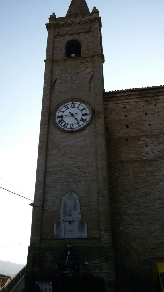 La lapide è affissa sulla torre campanaria della chiesa di San Fortunato