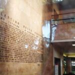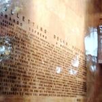 L'iscrizione è realizzata con caratteri di bronzo agganciati alla parete di marmo.