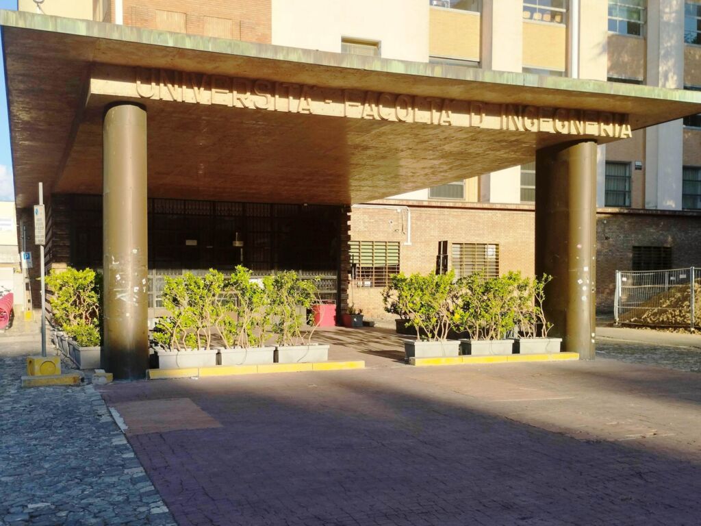 Nell'atrio di ingresso della Facoltà di Ingegneria.