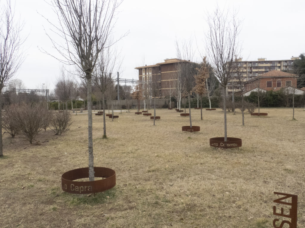 - Il bosco della memoria è un luogo fortemente simbolico. E' un parco cittadino dedicato ai deportati monzesi composto da 92 alberi di specie diverse ma tutte locali ognuno di essi associato al nome di un deportato. Solo una ventina di questi monzesi ritornarono a casa e la finalità di questo parco è proprio permettere loro di tornare a casa, o almeno tornare nel ricordo di chi visiterà questo parco. Ogni albero infatti è circondato da un cilindro di corten che riporta il nome e cognome di un monzese deportato per indicare la loro unicità ma anche il loro simbolico ritorno alla vita attraverso la memoria che proprio questo parco vuole preservare. Non c'è una particolare associazione tra deportato e tipo di albero scelto, solo in un caso, tre donne sono rappresentate da tre alberi da frutta collocati vicini. Gli alberi inoltre sono raggruppati in varie sezioni secondo la geografia dei campi di sterminio. Al centro del bosco c'è inoltre un landmark verticale con la scritta Bosco della memoria per segnalare il parco anche a chi passa in macchina o in treno. Lì si trovano anche dei cartelli informativi e la citazione di Brecht riportata nella sezione iscrizioni.