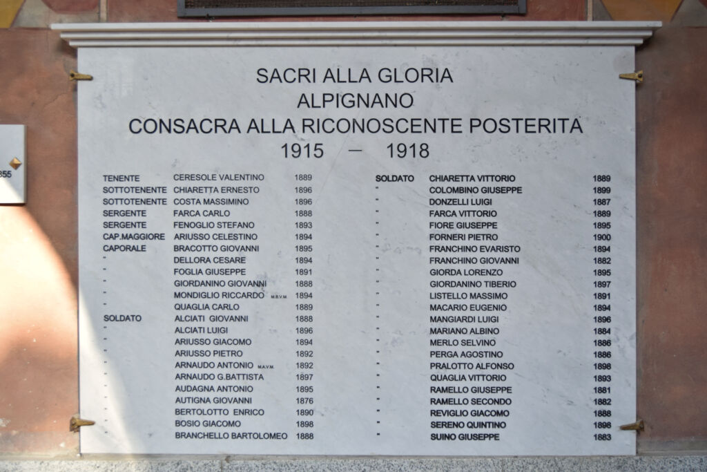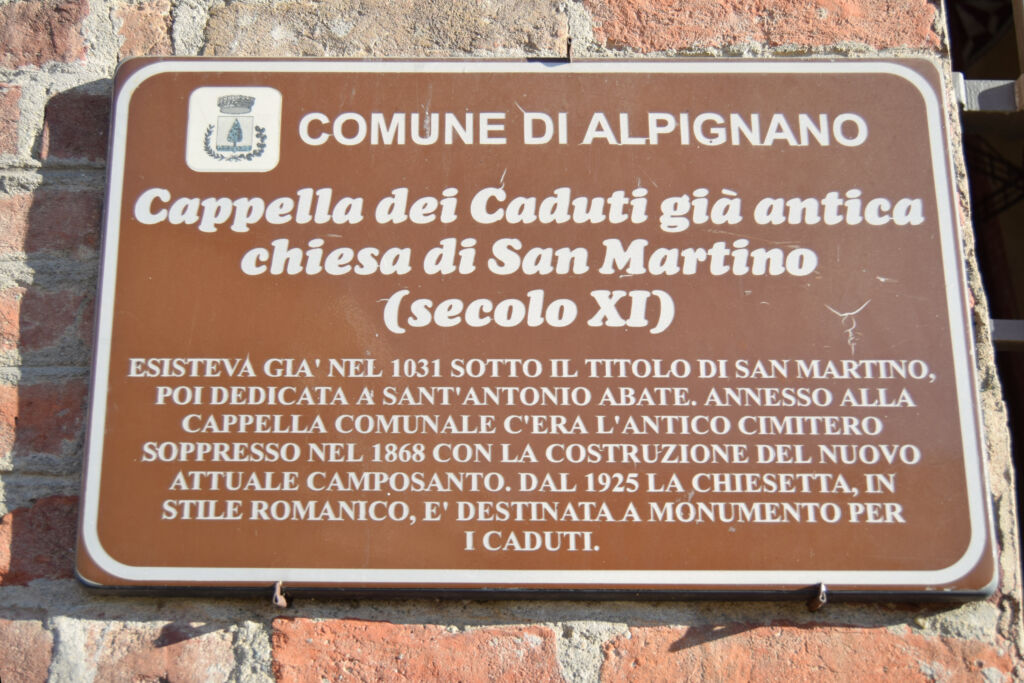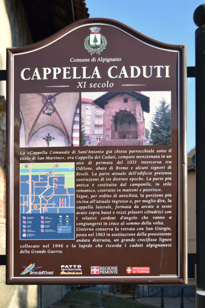 Su un angolo di Piazza dei Caduti ad Alpignano, nella prima cintura di Torino, sorge la cappella dell’XI secolo in stile gotico, dedicata dal 1925 alla memoria dei Caduti della Grande Guerra.