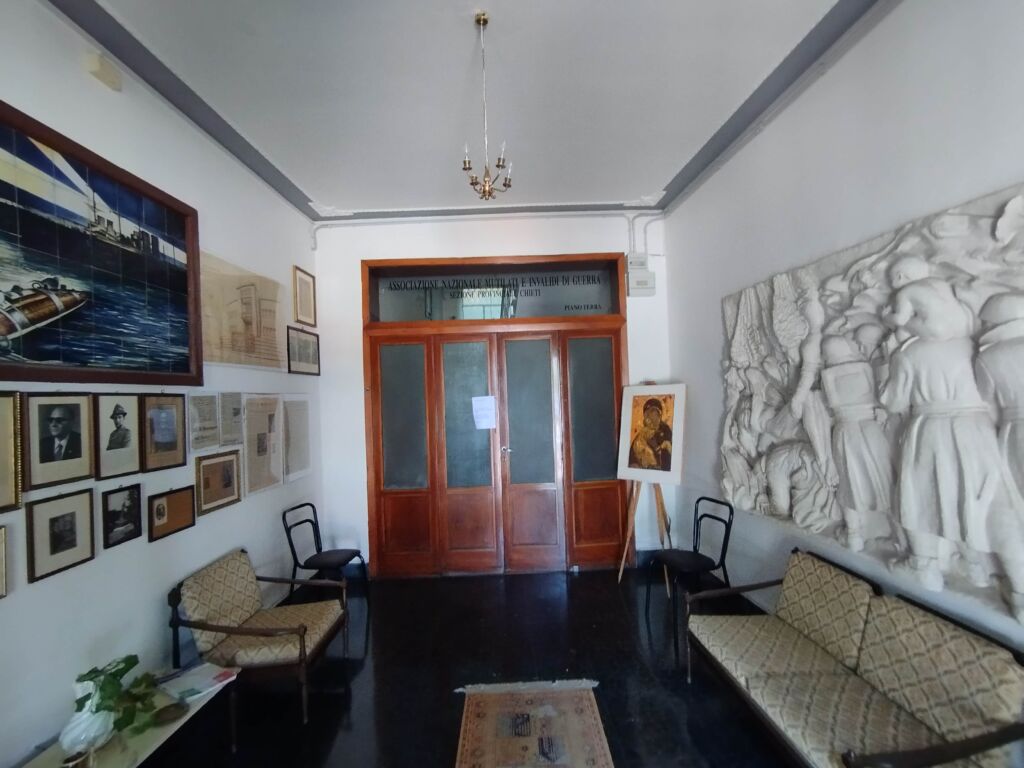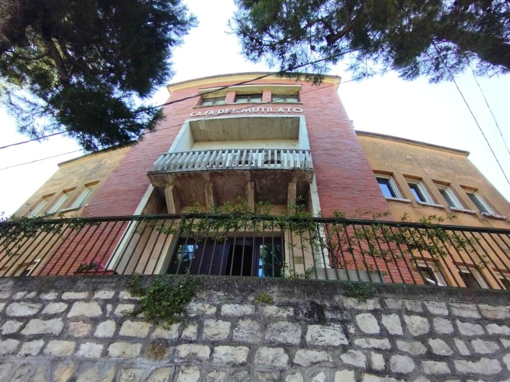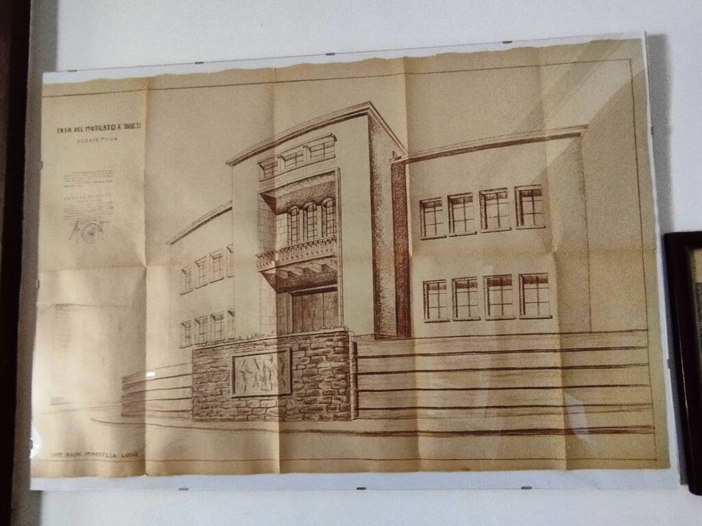 - L’edificio fu progettato e costruito negli anni Cinquanta del '900, su progetto dell'architetto Luigi Martella, come sede della sezione teatina dell’ANMIG (Associazione Nazionale Mutilati ed Invalidi di Guerra). La casa ha una forma arcuata, per assecondare l’andamento della via sottostante. La facciata anteriore si caratterizza con un corpo centrale di forma e materiali diversi rispetto alle due ali. Il primo, più alto, è rivestito di mattoni rossi e al suo centro ci sono un ampio portone sovrastato da un balcone e tre finestre rettangolari. Tra il balcone e le finestre è presente la scritta “CASA DEL MUTILATO” con caratteri di marmo bianco a rilievo. Le parti laterali, che presentano due ordini di finestre rettangolari, sono intonacate e verniciate di giallo. L’accesso dalla strada avviene attraverso un portale, in marmo bianco, chiuso da un cancello in ferro battuto composto da due parti fisse laterali e una mobile centrale. Dal portale la casa sopraelevata viene raggiunta attraverso una scala in pietra. L’ingresso, con un bel pavimento in marmo nero, ha sulla parete destra un bassorilievo e su quella di sinistra una serie di cimeli