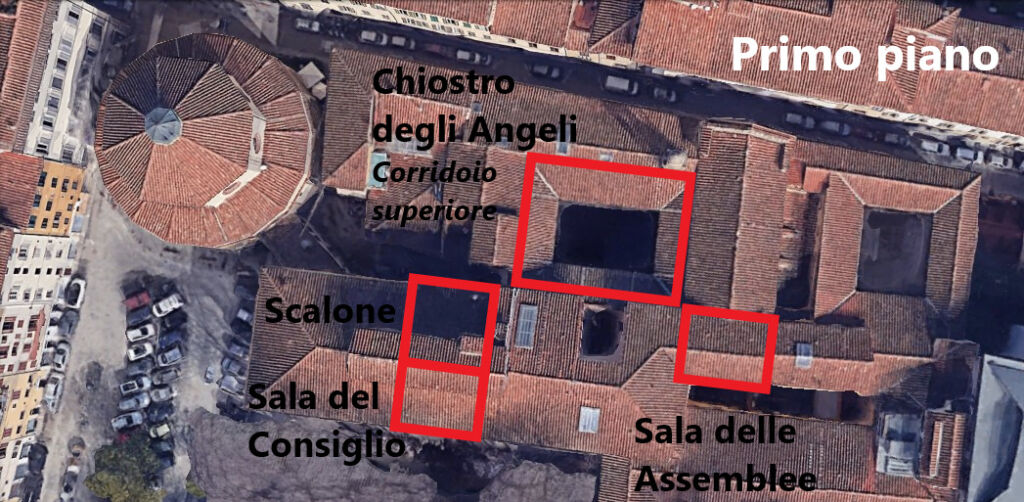 L'affresco "Il Concilio di Firenze del 1439" prima della costruzione della Casa del Mutilato si trovava nella libreria dell'ex monastero che si trovava nel braccio del complesso che risaliva al Seicento e al Settecento.