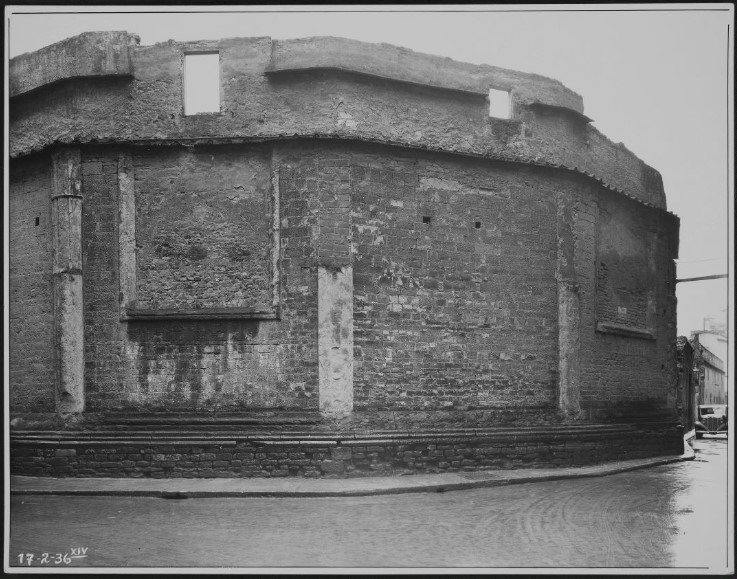 Il terzo medaglione (indicato con la lettera E nella mappa) del lato maggiore non è più presente.