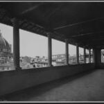 Ogni pannello è sorretto da un telaio di legno scorrevole verso l'alto e un meccanismo di corde e pulegge consente alla vetrata di aprirsi in senso trasversale.