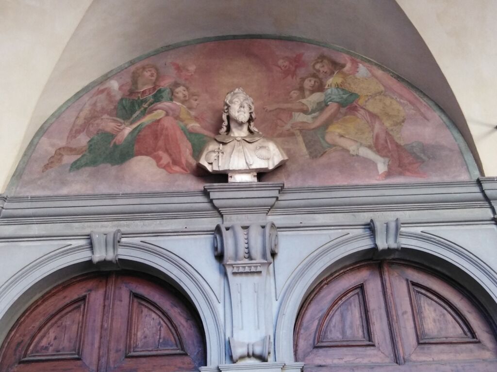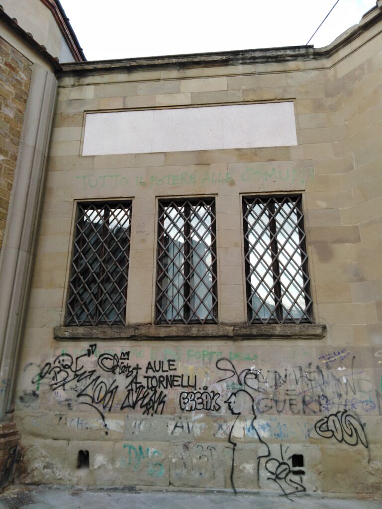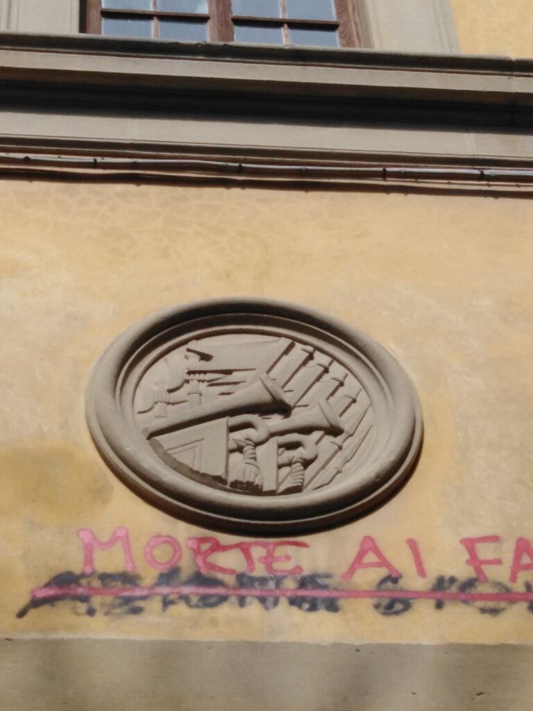 (FONTE: Facebook, 8 maggio 2022), che si ritrova anche sotto i busti di Gesù e san Pier Damiani e nella facciata su piazza Brunelleschi, in cui si legge:
