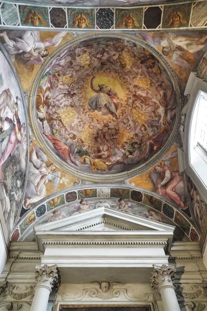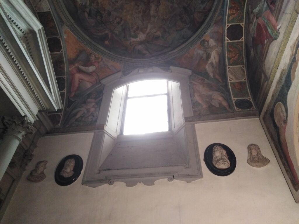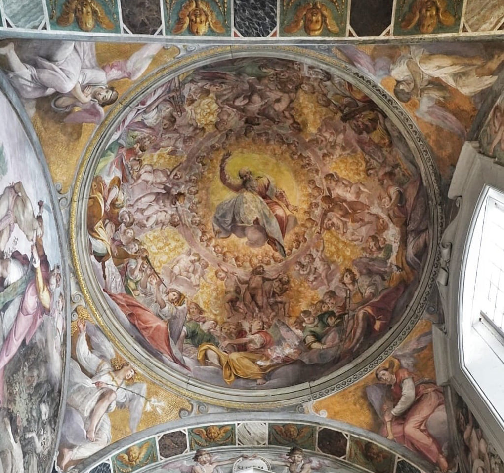 La cupola affrescata, terminata nel 1599, fu dipinta da Bernardino Poccetti (1548 - 1612), che usò lo spazio ridotto a disposizione per creare un'illusione prospettica a "lanterna" attraverso una finta architettura di quattro colonne sormontate da una cornice circolare.