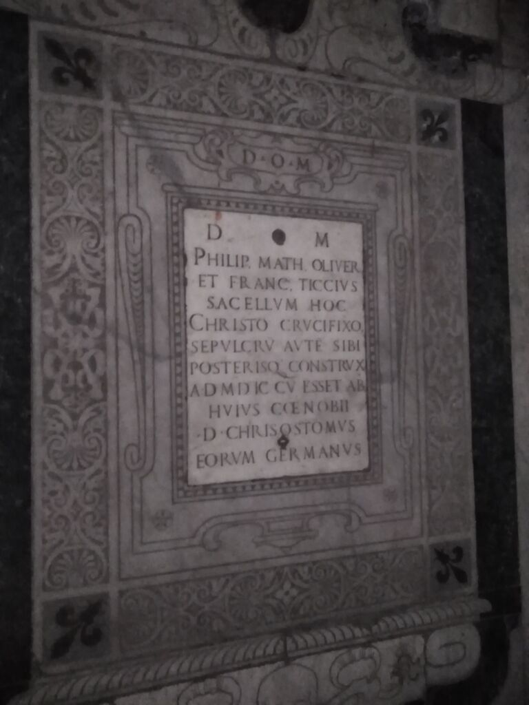 Targa alla base dell'affresco "Ultima cena" in metallo