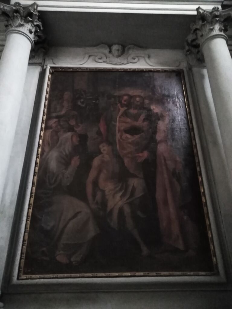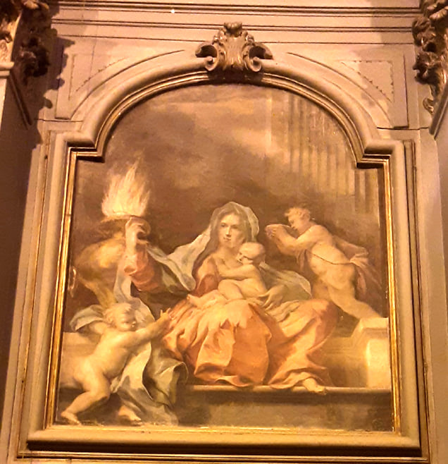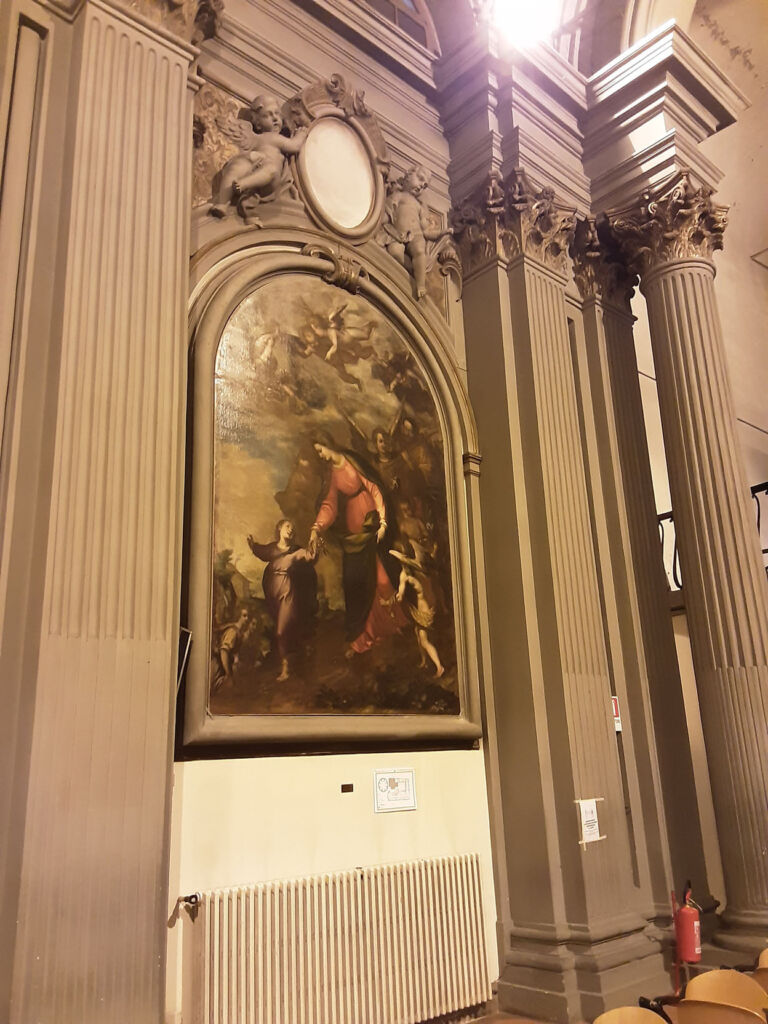 Quest'ultima opera, che fu dipinta da Giovan Battista Paggi (1554 - 1627) a fine Cinquecento, in cui, in un tripudio di angeli volteggianti, si vede Maria che tiene per mano Gesù, rappresentato da un bambino di sei - sette anni con la mano alzata, con San Giuseppe, posto dietro di loro, che li osserva e segue.