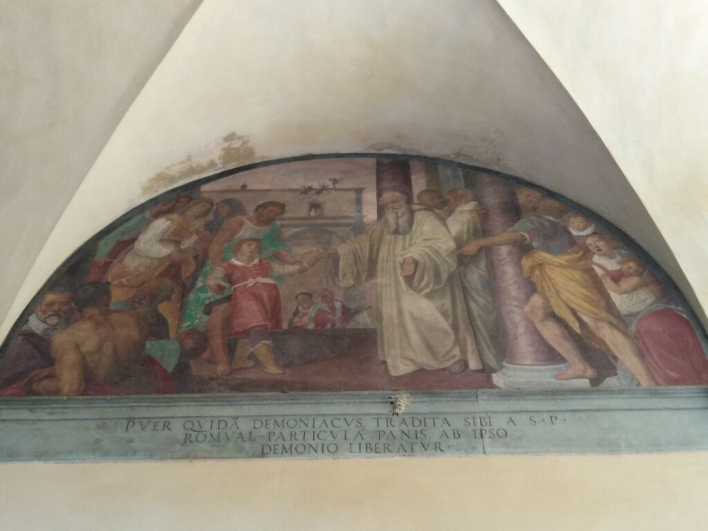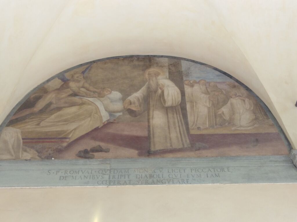 Gli altri affreschi raccontano la storia di San Romualdo. Le lunette prospicienti la chiesa sono sempre di Poccetti, mentre quelle lungo gli altri due lati del chiostro sono di Donato Arsenio Mascagni (1579 - 1637) e di Bernardino Monaldi (nato nel 1568).