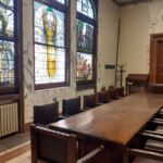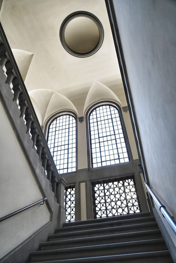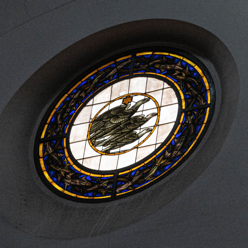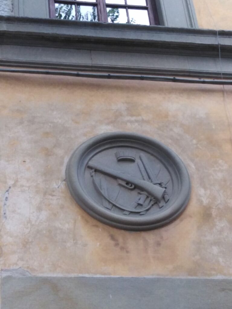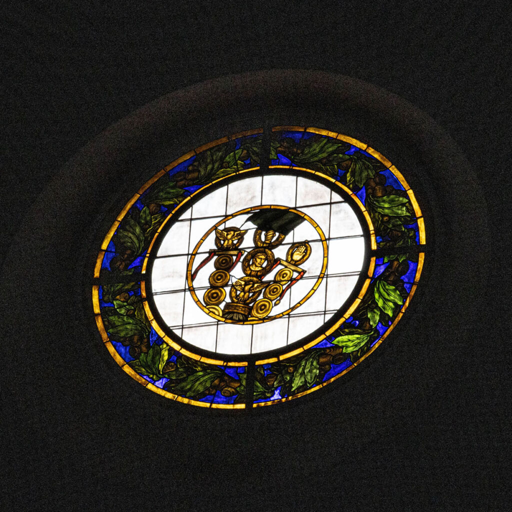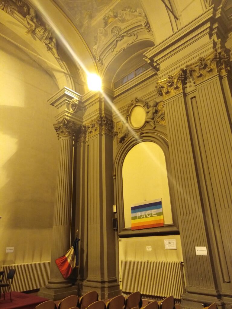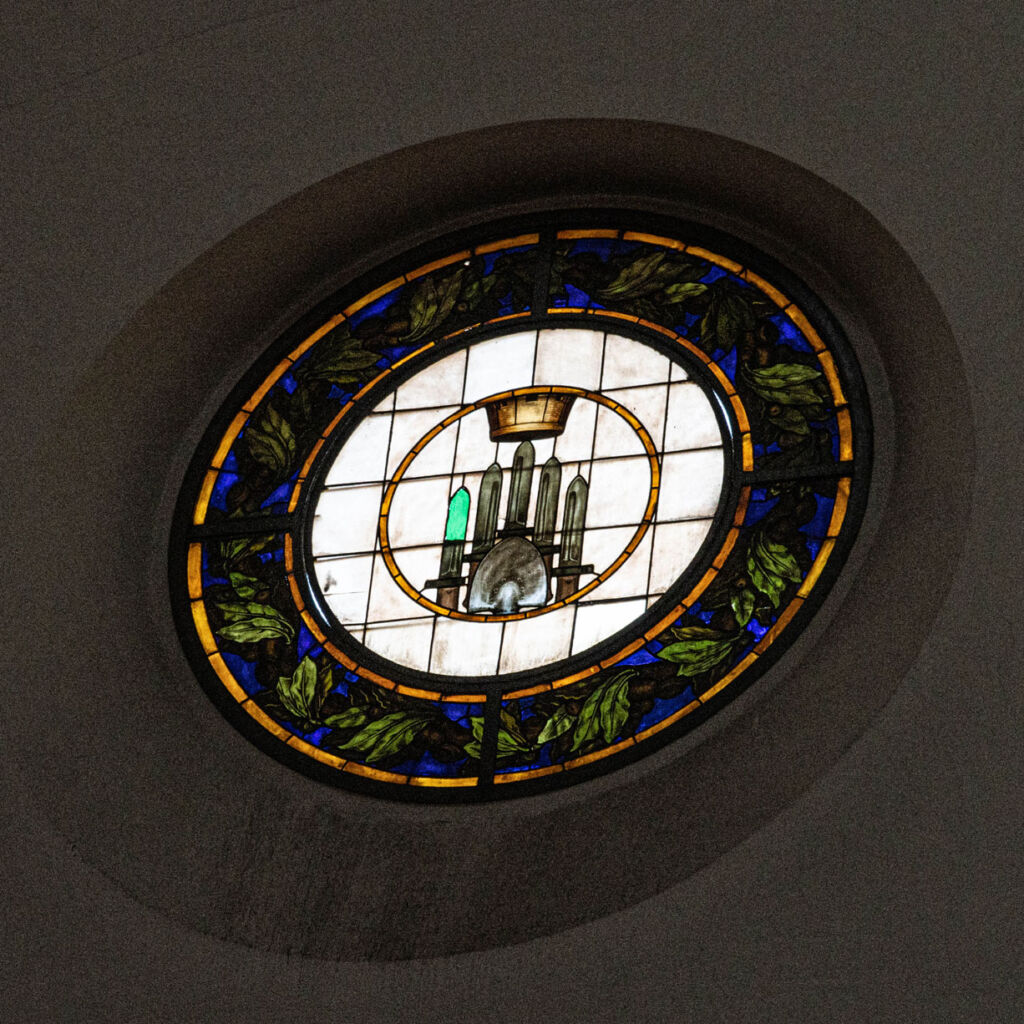Nella parte inferiore della vetrata della sala del Consiglio è presente un giglio nero, simbolo della città di Firenze.